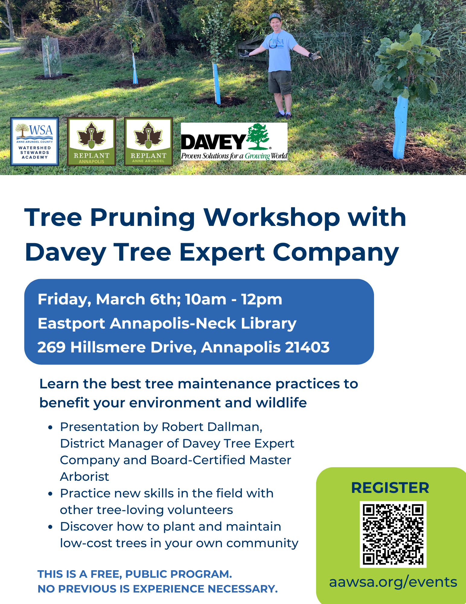 Work in the field to practice proper pruning and mulching to support the young trees at Eastport Annapolis Neck Library.