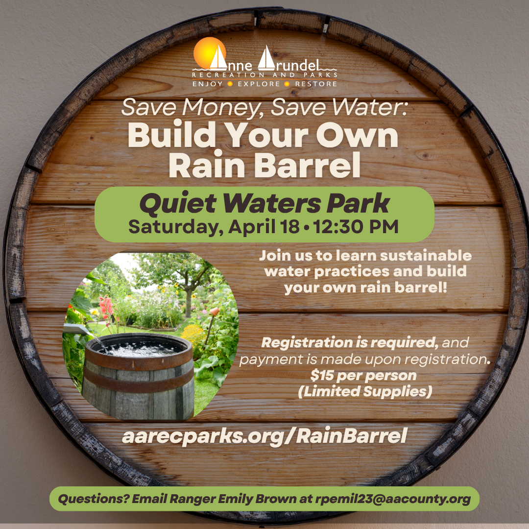 Join Ranger Emily at Quiet Waters Park for a sustainable workshop! You’ll be taught all about sustainable water practices and build your very own rain barrel to take home. It's the perfect way to reduce stormwater runoff and conserve water for your garden!